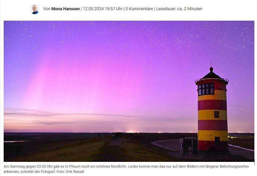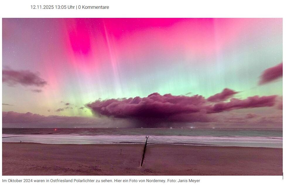 gab es in den letzten beiden Jahren vermehrt Polarlichter zu sehen. Daran möchte ich hier noch einmal erinnern… die Nordseeküste ist einer der Orte in Deutschland, wo man dieses Spektakel mit am häufigsten sehen kann. Zwei Bilder zum Träumen habe ich bei „Leserfotos“ der Ostfriesenzeitung gefunden.